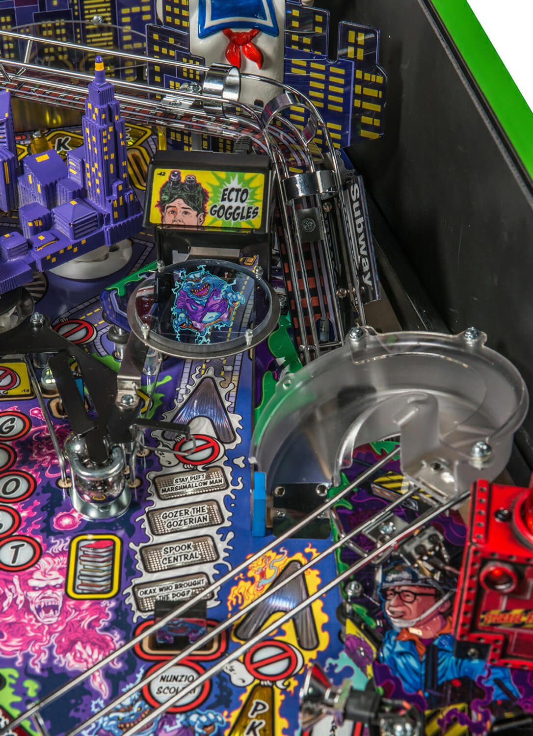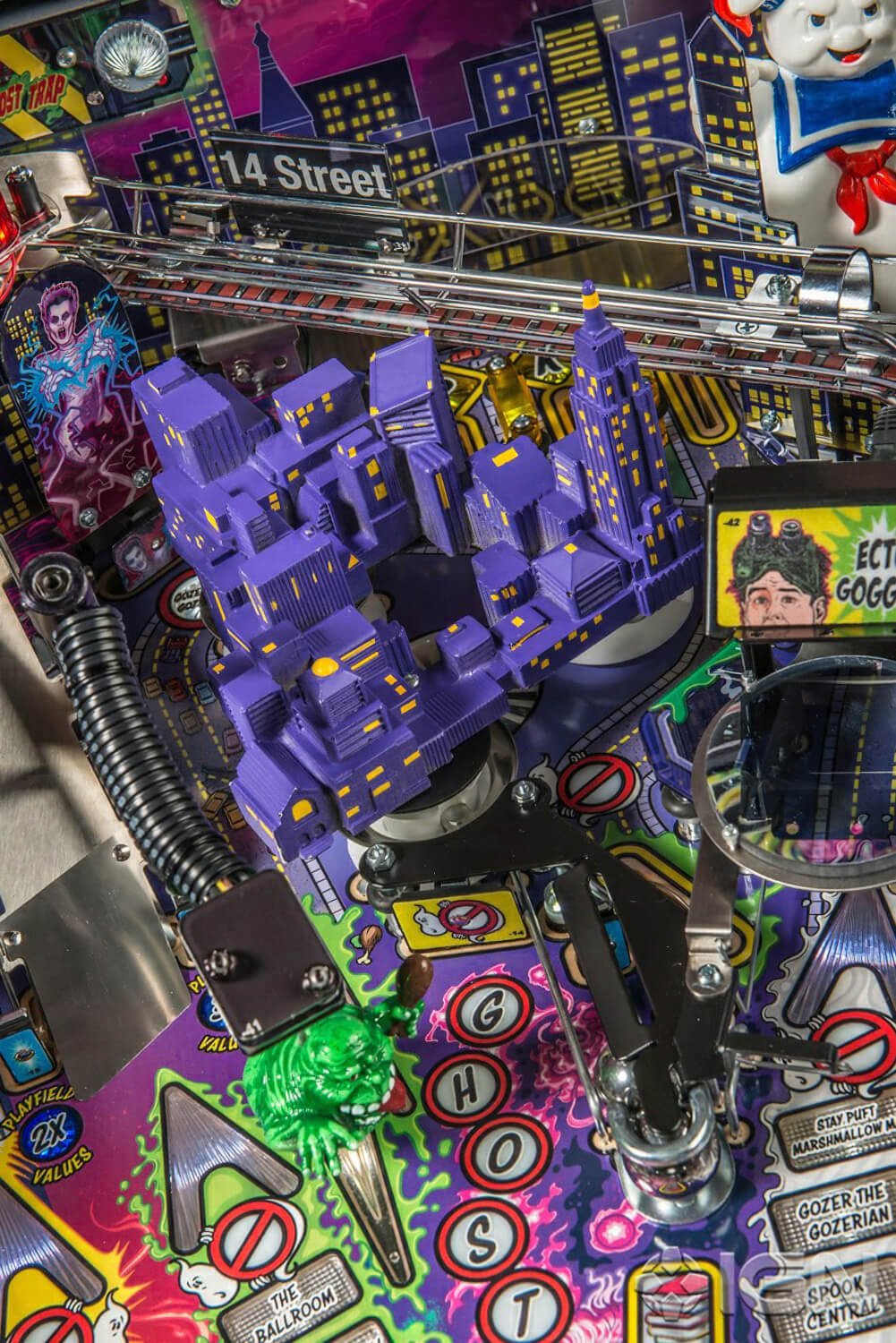 • A moving Slimer target that slides across the playfield.